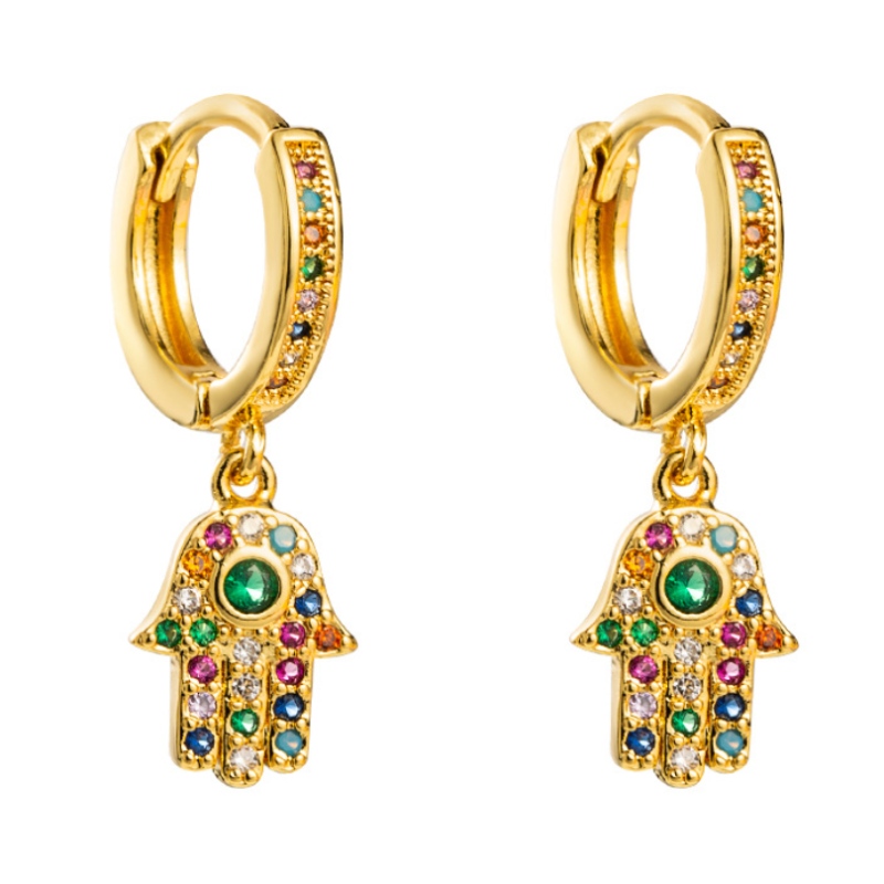 Copper micro-inlaid colored gemstone earrings female European and American style trend personality palm earrings cold wind net red ear jewelry