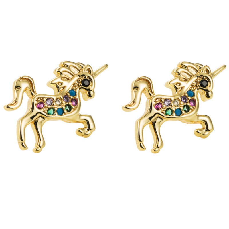 European and American cross-border fashion hot creative unicorn earrings ladies copper gold-plated micro-inlaid zircon constellation temperament earrings