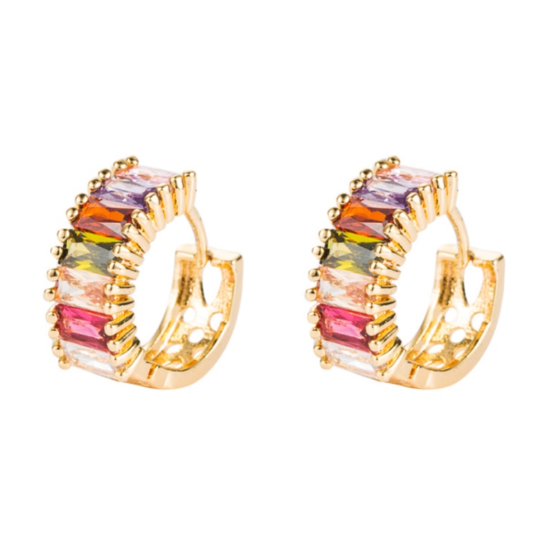 European and American cross-border ins new fashion color zircon earrings female brass gold-plated simple earrings niche earrings