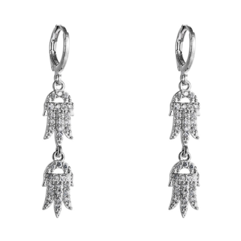 European and American fashion all-match earrings, copper inlaid white zircon earrings, female palm-shaped Japanese and Korean simple temperament long earrings