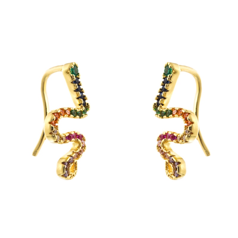 European and American fashion curve lady serpentine earrings colorful zircon earrings