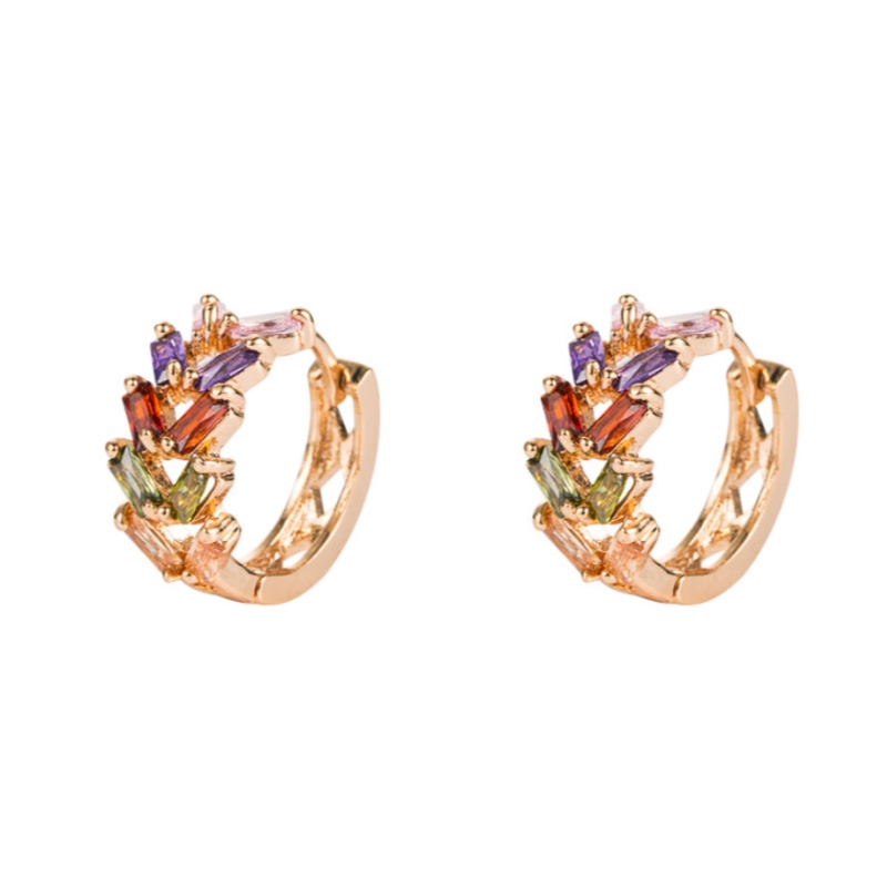 European and American fashion personality leaf brass micro-inlaid zircon earrings female Korean temperament earrings metal cold wind earrings