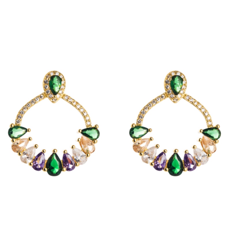 European and American personality brass earrings temperament female earrings micro-inlaid color zircon earrings flower-shaped Japanese and Korean ear jewelry