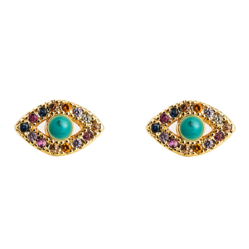 European and American simple temperament female stud earrings brass gold-plated inlaid color zircon devil's eye earrings wild earrings