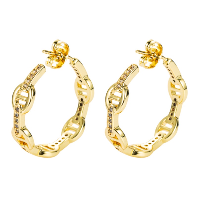 New European and American fashion geometric big ear hoop earrings female brass gold-plated micro-inlaid zircon personality simple ear jewelry