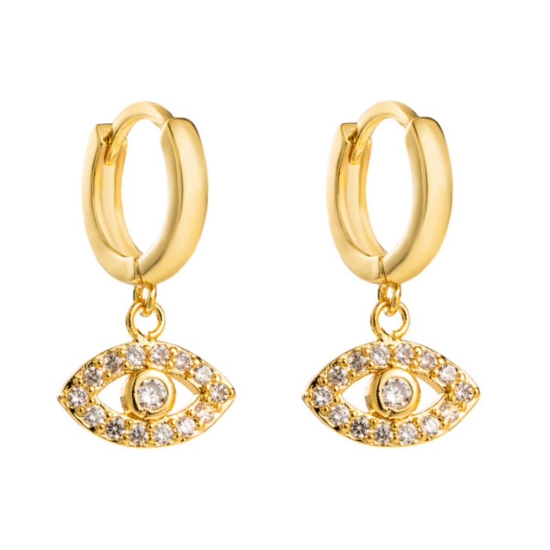 New jewelry small fresh temperament eye earrings female ins copper plated real gold micro-inlaid zircon earrings earrings
