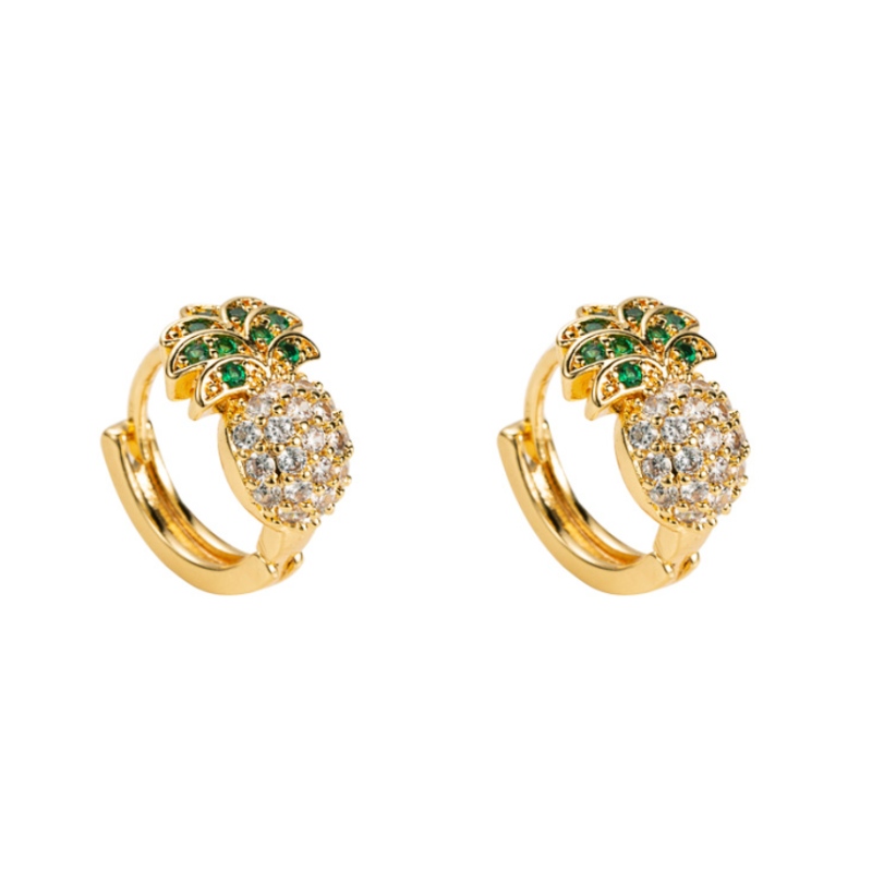 Spring and summer new European and American cross-border source pineapple shape earrings female copper micro-inlaid zircon South Korea cute simple earrings