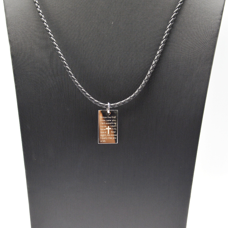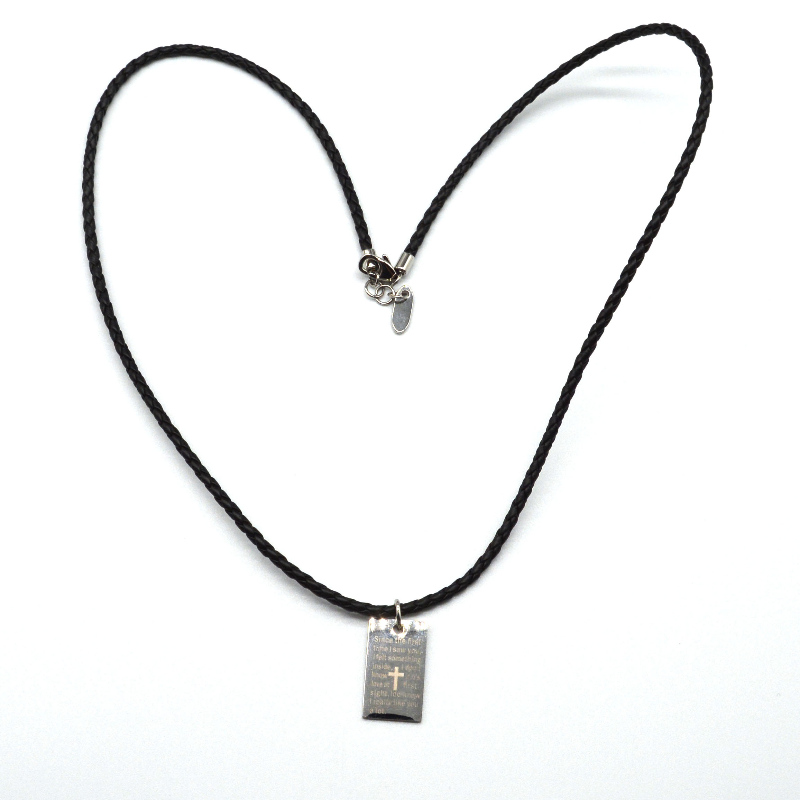 Stainless steel Scripture Pendant Leather Rope Necklace rfbnck0088