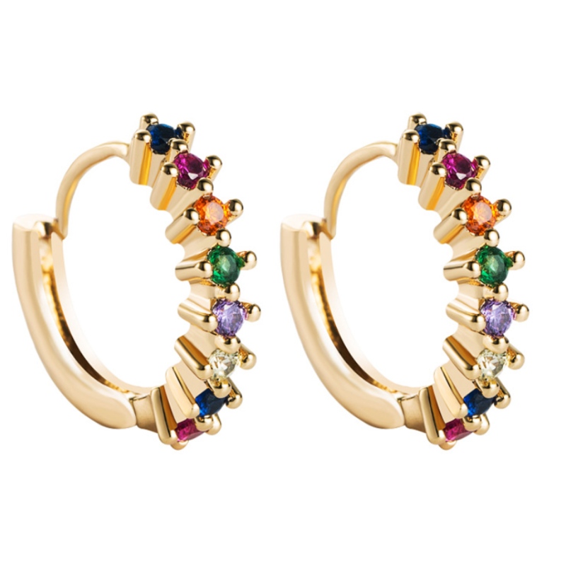 earrings European and American cross-border sources inlaid colorful zircon geometric round earrings hip hop copper gilded jewelry