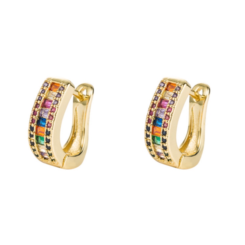 ins European and American color-preserving electroplated brass micro-inlaid color zircon earrings U-shaped geometric full diamond earrings ear buckle women