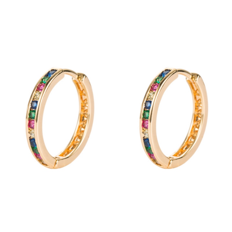 ins European and American colorful circle earrings, small circle earrings, geometric earrings, female color diamond hip hop earrings earrings