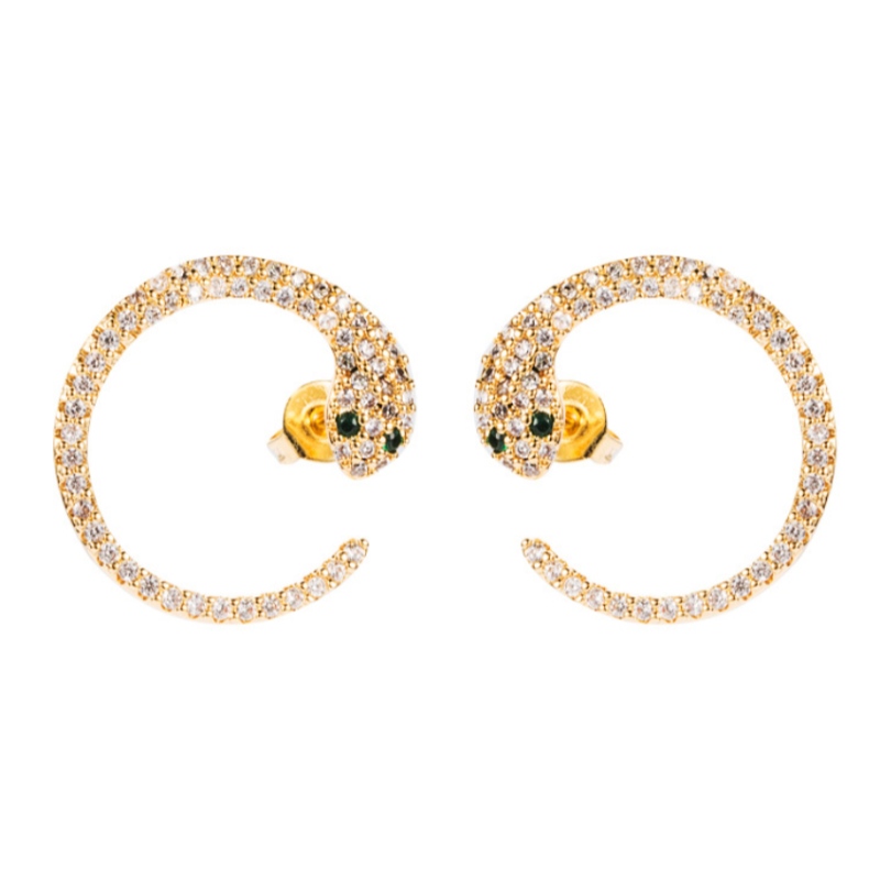 ins European and American cross-border new product earrings exaggerated personality snake-shaped earrings micro-inlaid zircon hip-hop C-shaped snake earrings