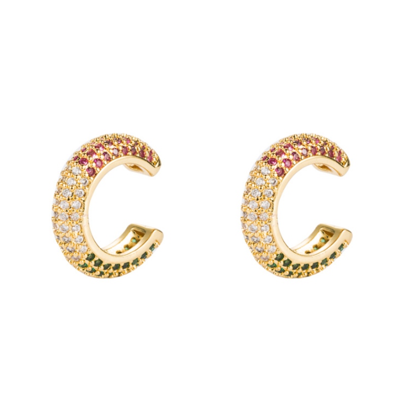 ins European and American earrings gold-plated brass with color zircon earrings hip-hop men and women without pierced ear clips