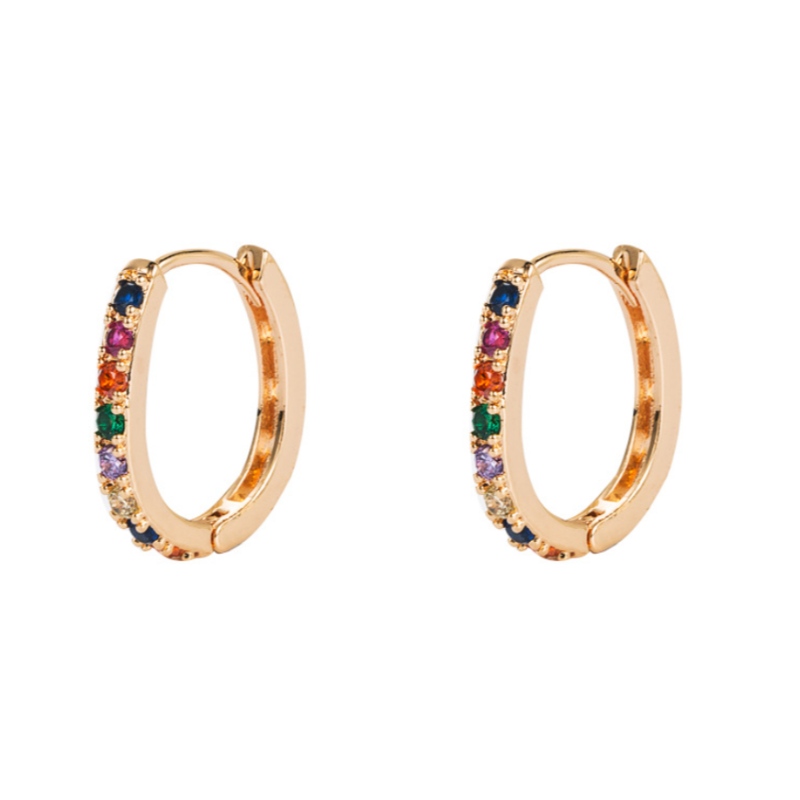 ins European and American wild earrings female brass rose gold plated micro-inlaid color zircon earrings geometric hip hop earrings