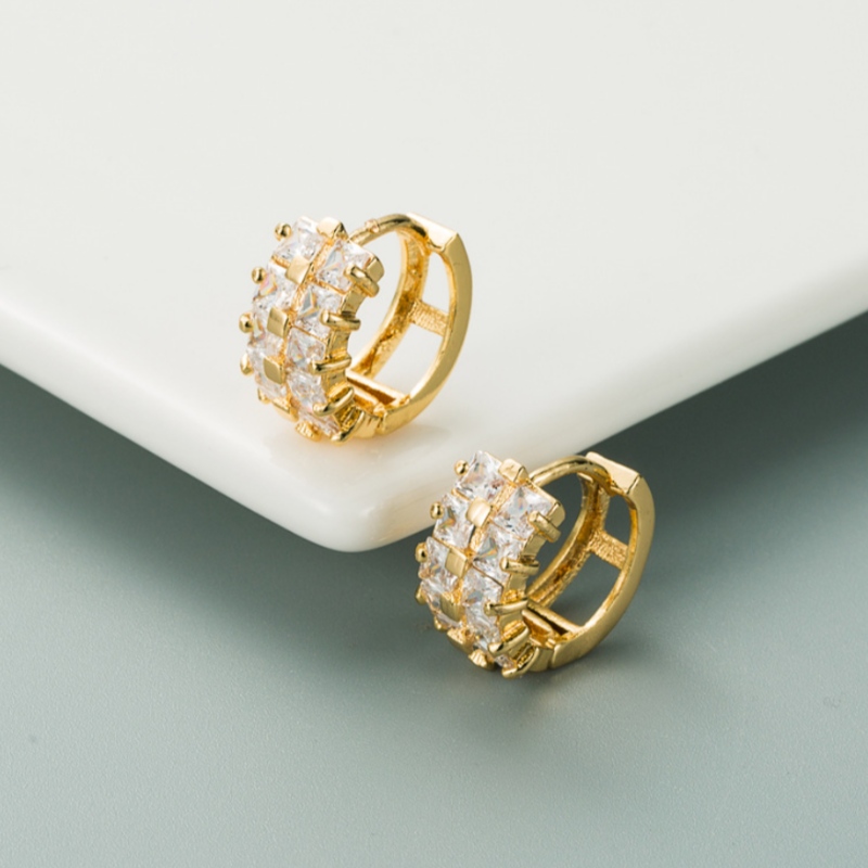 ins rainbow series European and American personality earrings copper gold-plated micro-inlaid color double row zircon earrings hip-hop earrings