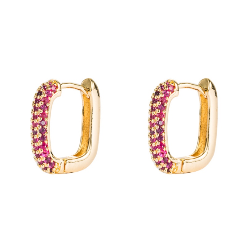 ins rainbow series European and American style female earrings geometric copper gold-plated micro-inlaid colorful zircon hip-hop earrings