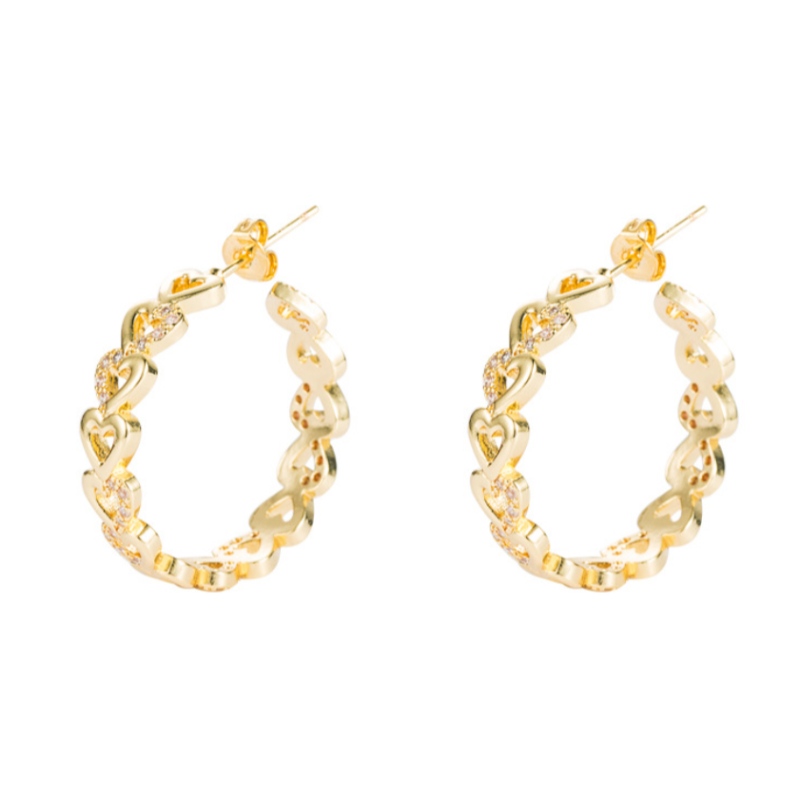ins style new European and American fashion geometric big ear hoop earrings female brass gold-plated micro-inlaid zirconium heart-shaped earrings