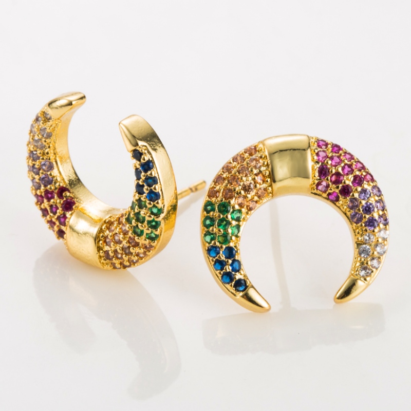 ins wind earrings Europe and America cross-border exclusively for color zircon earrings female moon-shaped earrings copper gold-plated accessories